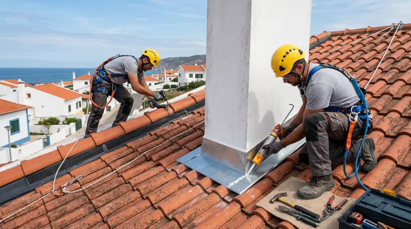 Um único elo fraco compromete o sistema: beiral obstruído, rufo mal vedado ou fixação insuficiente pode originar humidade, infiltração ou deslocação de peças — mesmo com telhas novas.